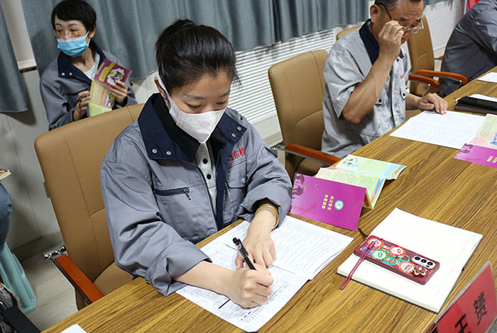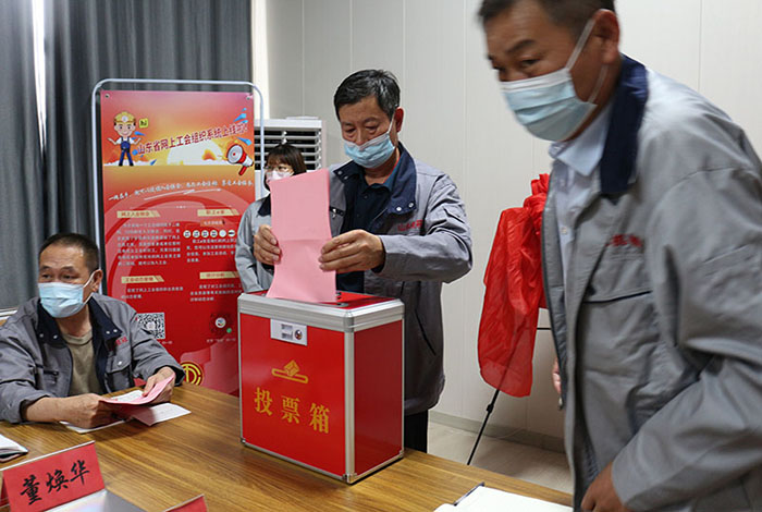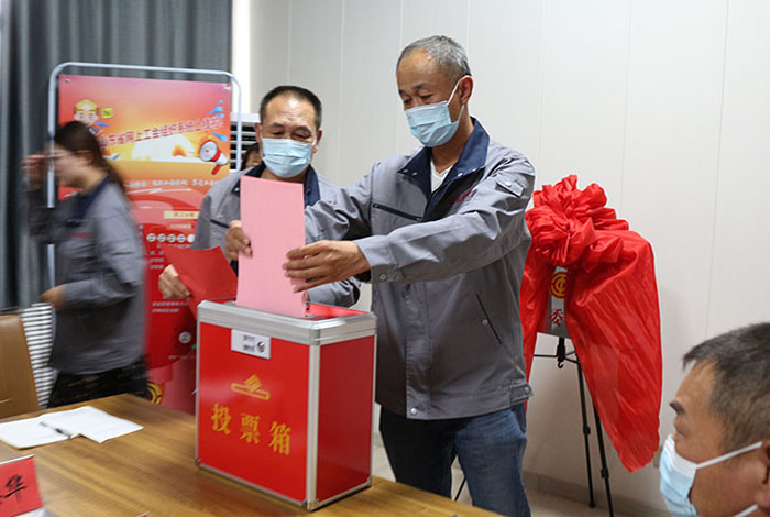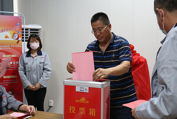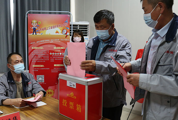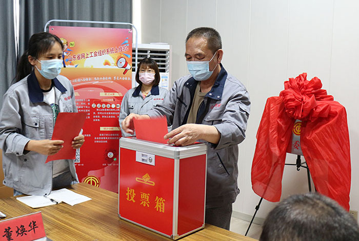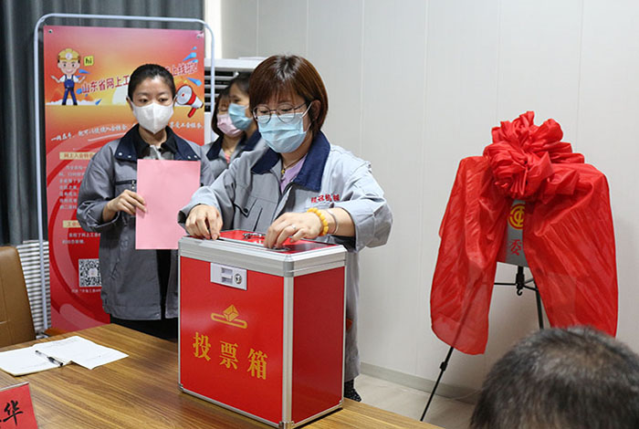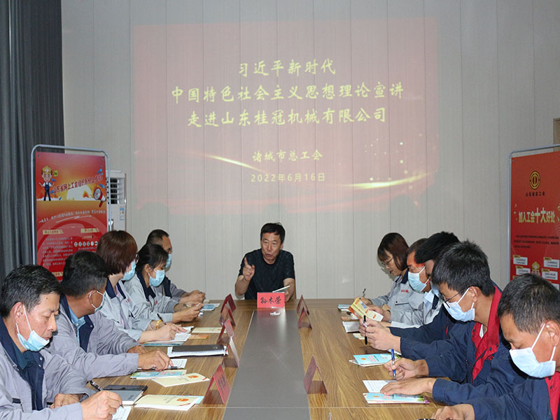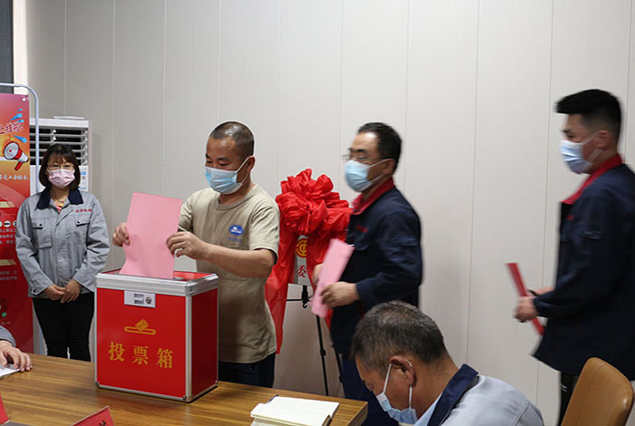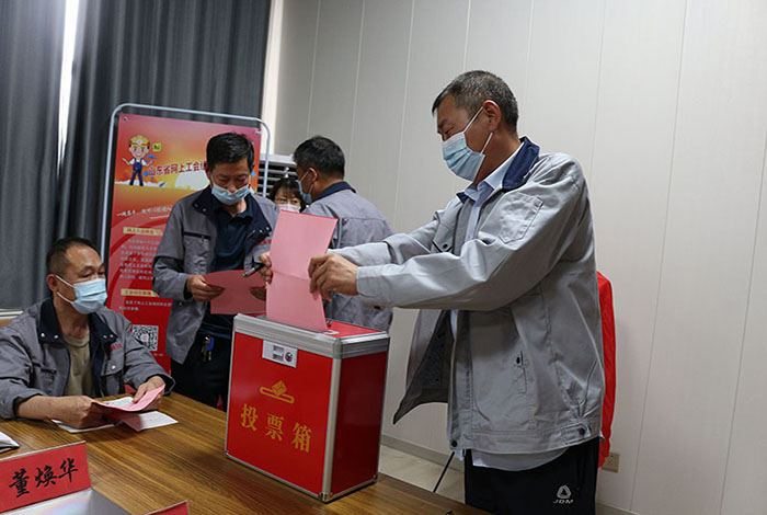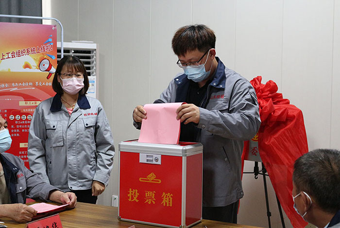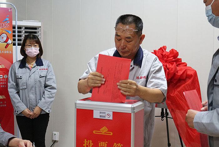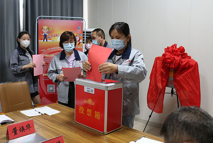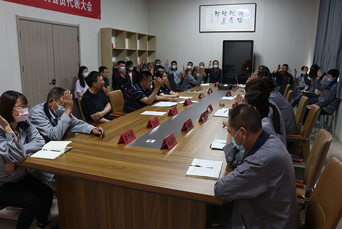 2022年06月16日山东桂冠机械有限公司一届一次工会会员代表大会会议准时召开,出席本次工会会议重要领导人员有:市总工会党组成员副主席王霞同志,滨河片区党工委副书记王泽和同志,桂冠机械有限公司董事长杨桂刚同志等相关领导,在滨河片区总工会专职副主席孙木荣宣读完市总工会《关于同意召开山东桂冠机械有限公司工会一届一次会员代表大会的批复》后,出席本次会议的25名公司在职人员在两位选举检票人的监督下通过《选举办法》民主选举出公司第一届工会委员会主席及委员,工会经费审查委员会主席及委员,审议通过公司第一届女职工委员会,劳动争议调解委员会。
