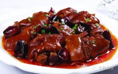 (6)酱制 码锅后,盖上锅盖,用旺火煮2~3h。然后打开锅盖,放入适量糖色,达到枣红色,等到汤逐渐变浓时,改用中火焖煮1h。用手摸肉块是否熟软,尤其是肉皮;看肉汤是否黏稠,汤面是否保留在原料肉的1/3。达到以上标准,即为半成品。