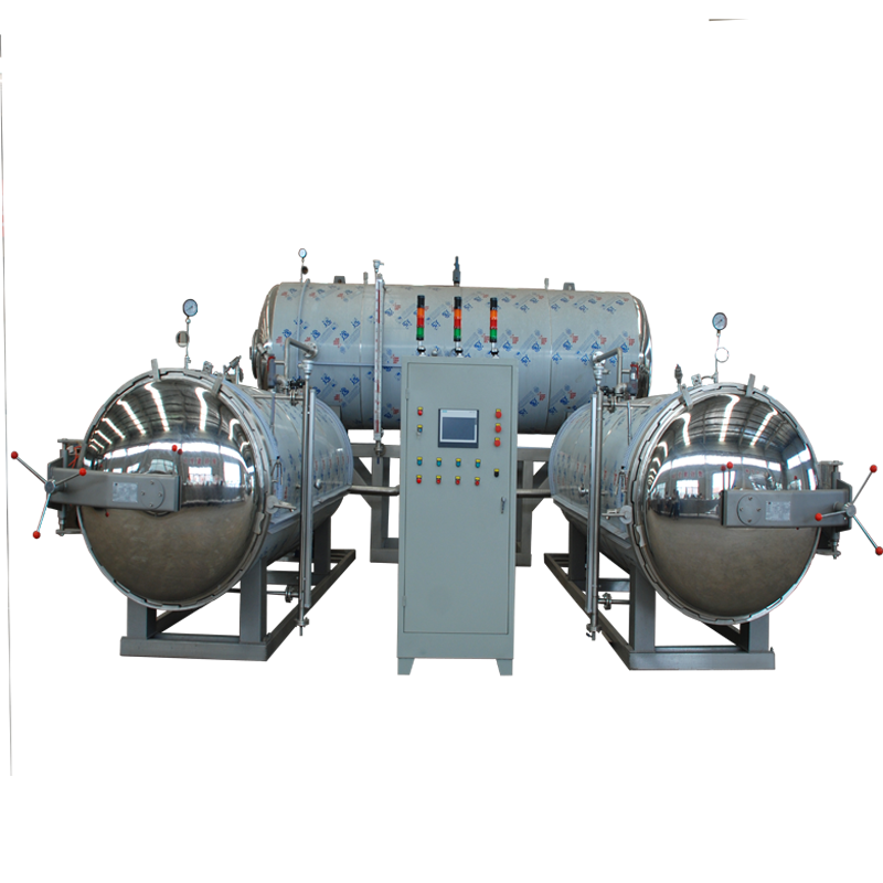 利用空气加压下的水作为加热介质,杀菌温度高于100℃,主要用于玻璃瓶和软性材料为容器的低酸性罐头的杀菌。杀菌(包括冷却)时罐头浸没于水中以使传热均匀,并防止由于罐内外压差太大或温度变化过剧而造成的容器破损。杀菌时需保持空气和水的良好循环以使温度均匀。杀菌设备主要是间歇式的,但罐头在杀菌时可保持回转。软罐头杀菌时则需要特殊的托盘(架)放置软罐头以利于加热介质的循环。